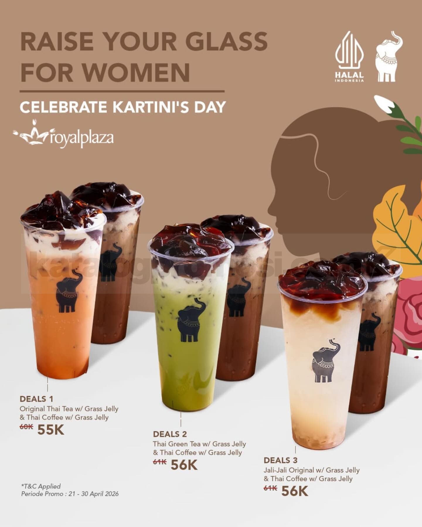 Promo DUMDUM Hari Kartini Paket 2 Minuman mulai Rp.55.000 berlaku selama 21–30 April 2026 pukul 10.00–22.00 di Dumdum Thai Drinks Express Royal Plaza sesuai ketentuan program.