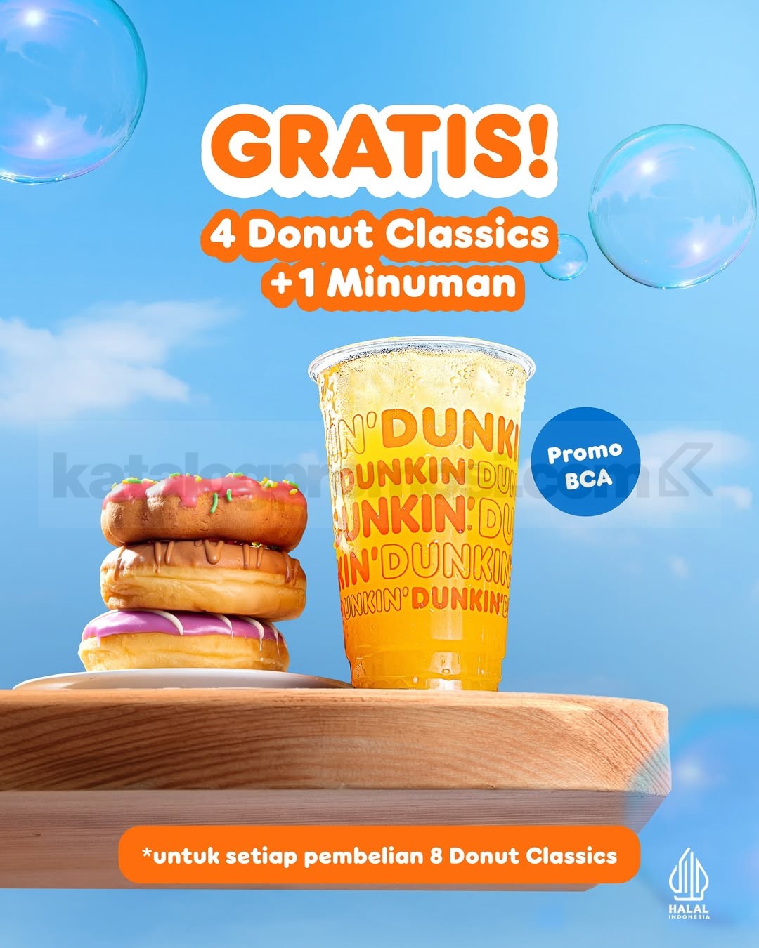Promo DUNKIN’ DONUTS BCA – BELI 8 GRATIS 4 Donut Classics + 1 Minuman* hanya berlaku setiap hari Kamis