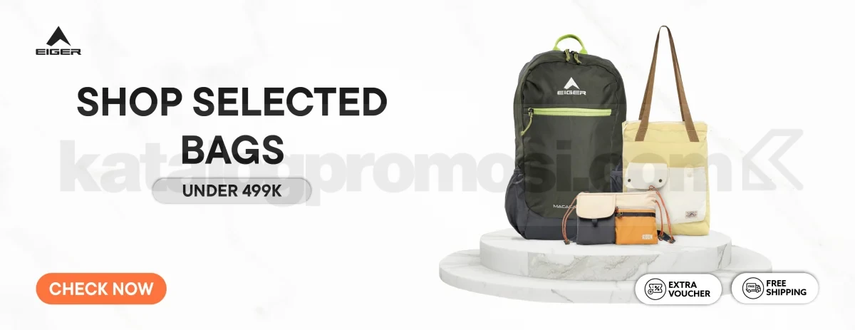 Eiger Adventure menghadirkan penawaran spesial berupa koleksi tas pilihan dengan harga di bawah Rp. 499 ribu. Selain itu, kamu juga bisa menikmati tambahan keuntungan seperti voucher ekstra serta gratis ongkir untuk pembelian melalui aplikasi dan website resmi Eiger Adventure.
