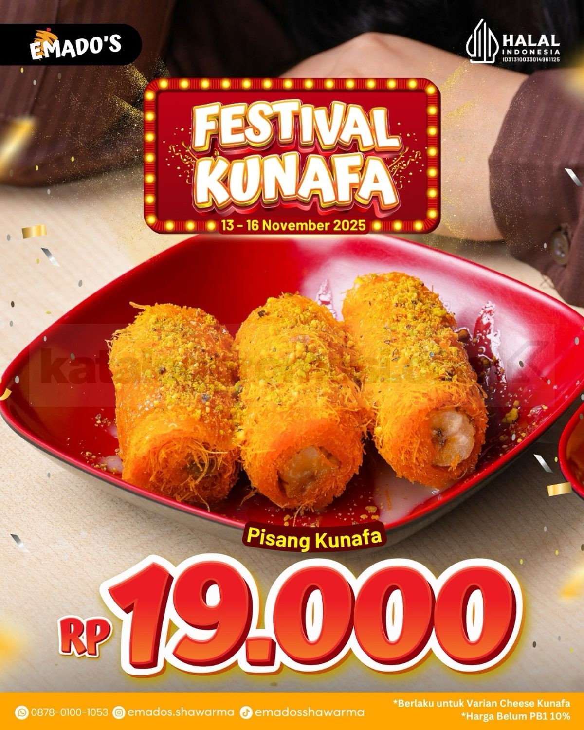 👉 Cek gambar Promo Emado’s Festival Kunafa Rp. 19.000 di bawah ini untuk lihat keseruan dan penawaran manisnya!