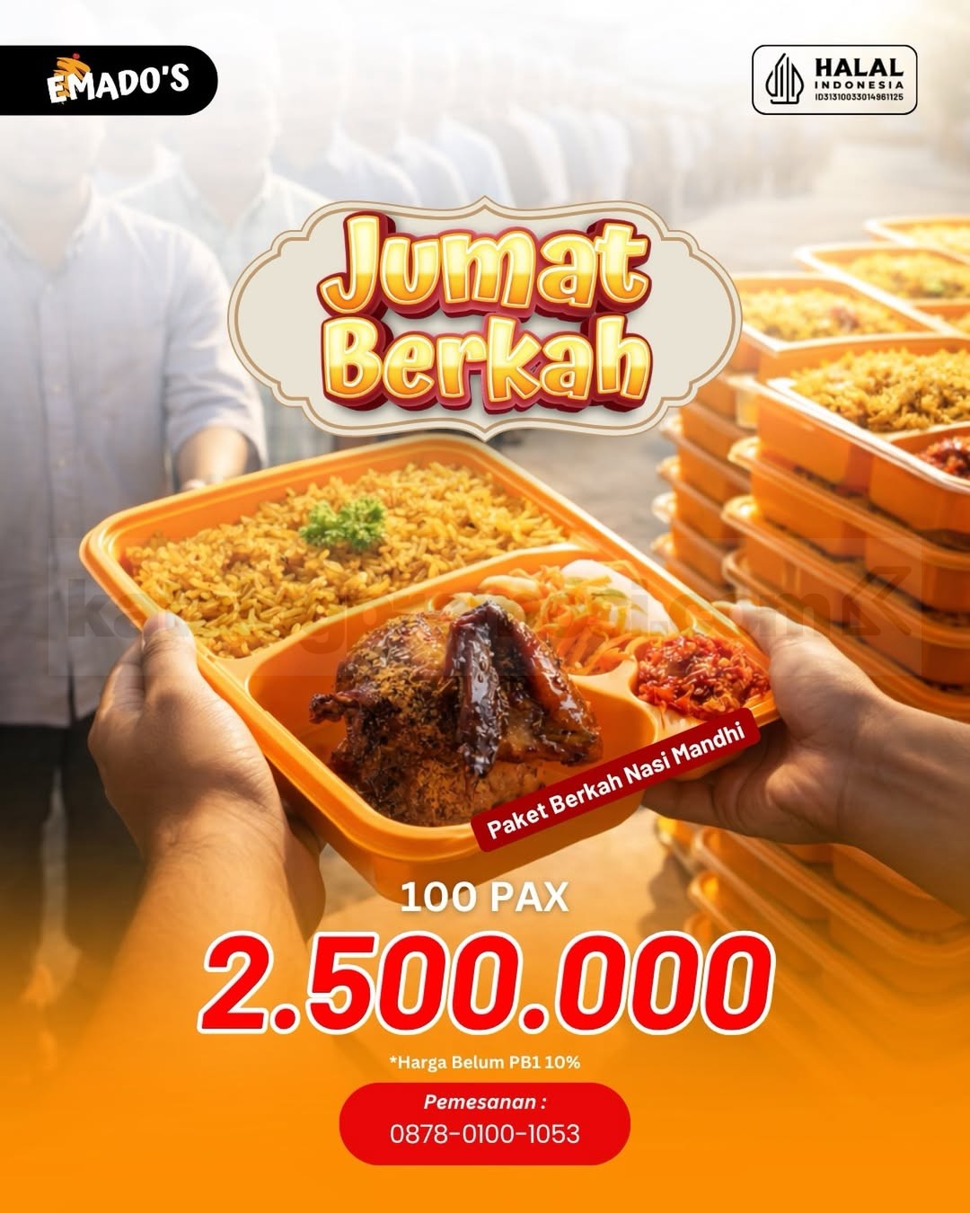 👉 Cek gambar promo Emado’s Jumat Berkah di bawah ini untuk lihat detail menariknya dan bikin langsung pengen order!