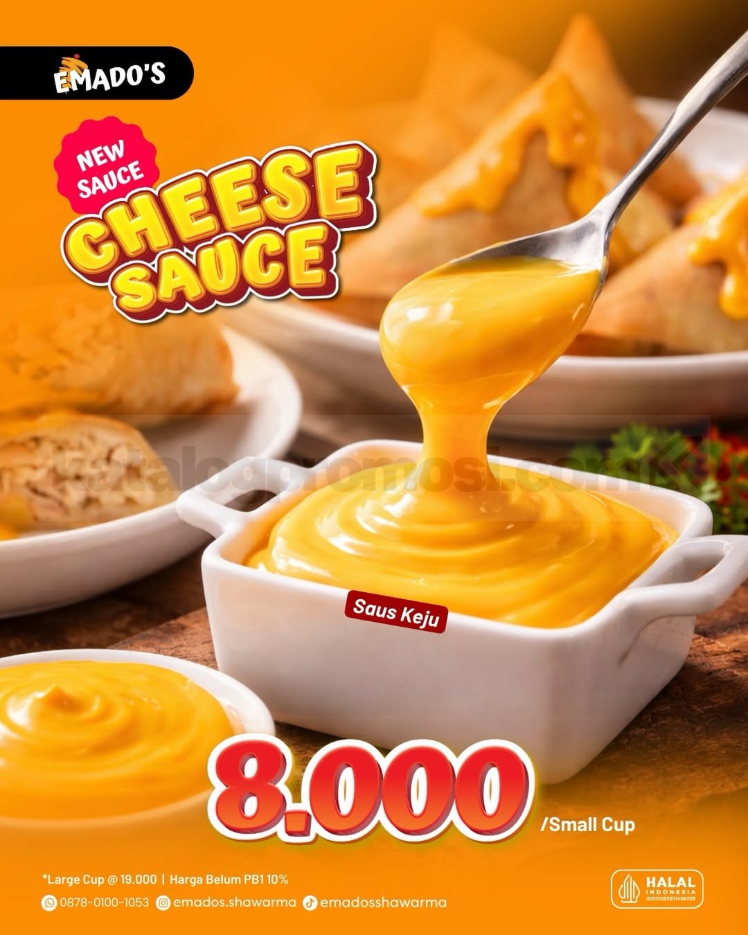 👉 Cek gambar Promo Emado’s NEW! Cheese Sauce di bawah ini untuk lihat saus kejunya yang bikin susah nolak