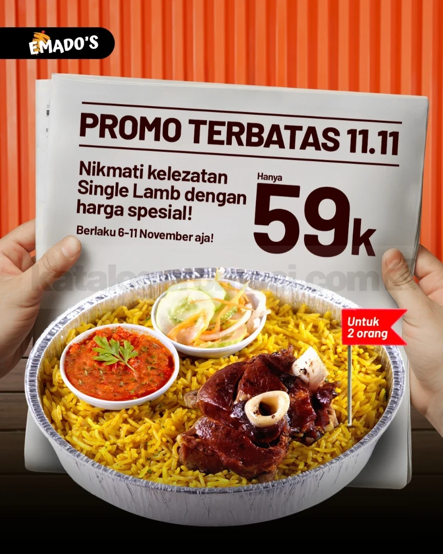 👉 Cek gambar promo Emado’s PARADE LAMB 11.11 di bawah ini buat lihat detail info dan tampilan menggoda menunya!