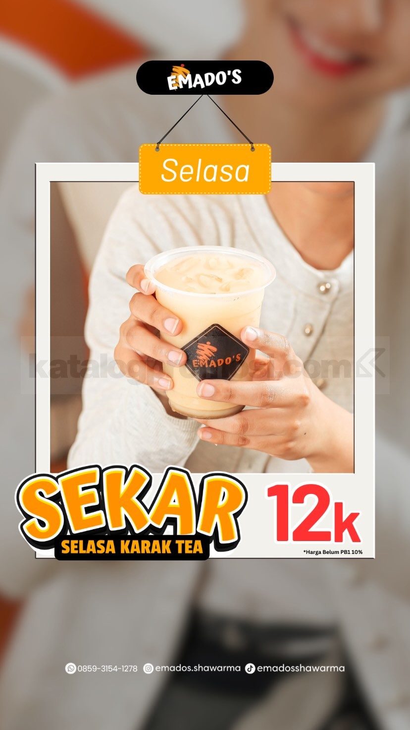 Jangan sampai kelewatan! Langsung cobain Promo Emados Shawarma Selasa Karak Tea Rp. 12.000 di store terdekat dan rasakan teh rempah creamy yang bikin hari Selasamu lebih seru dan hemat! ๐ซ๐