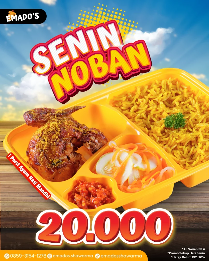 Paket tersedia mulai Rp. 125.000 dengan pilihan fleksibel yang membuat momen kumpul semakin mudah dan menyenangkan. Jangan lewatkan kesempatan buat merasakan menu istimewa dari Emado’s untuk akhir tahun ini. 🥳🍗🥘