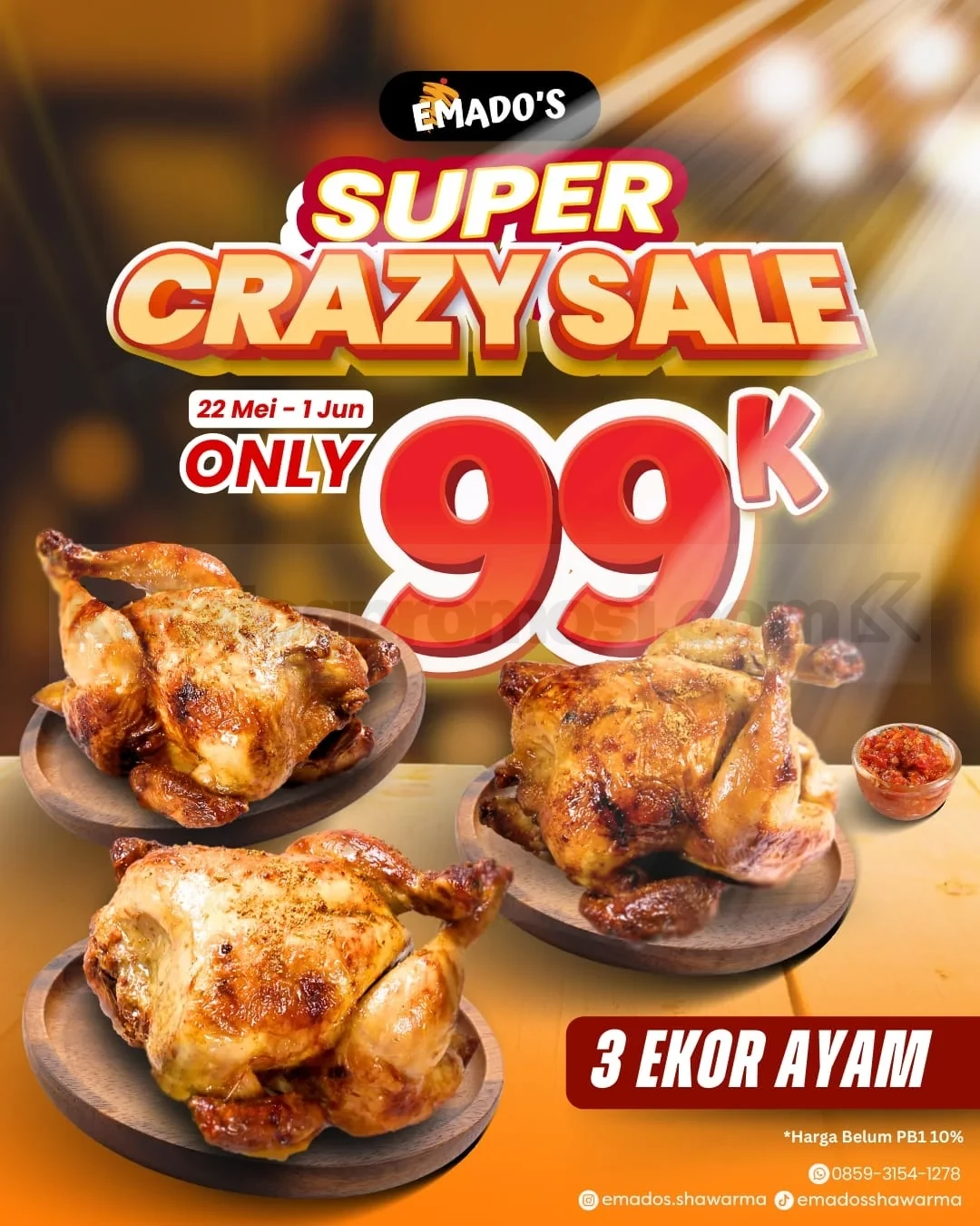 Detail Promo Emados Crazy Sale 3 Ekor Ayam Rp. 99.000