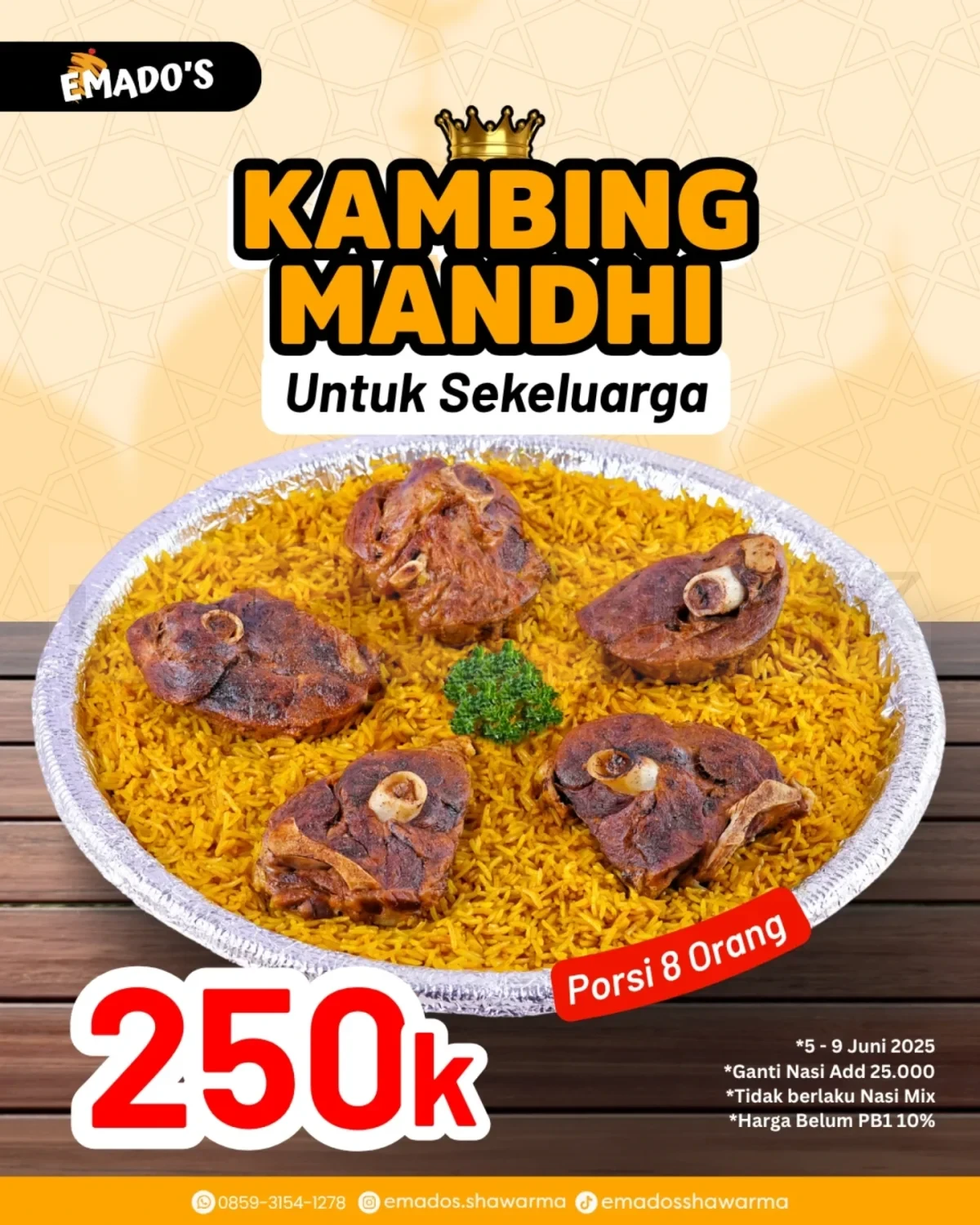 Promo Festival Kunafa Emado’s berlaku di semua store, baik untuk dine in, take away, melalui EmagoApp, Hotline, dan Goshop. Jangan lupa, harga belum termasuk PB1 10% ya! Tapi tenang, legitnya kunafa bakal bikin kamu lupa sejenak soal pajak. Periode promo ini cuma sebentar, dari 13–16 November 2025, jadi pastikan kamu datang lebih awal!
