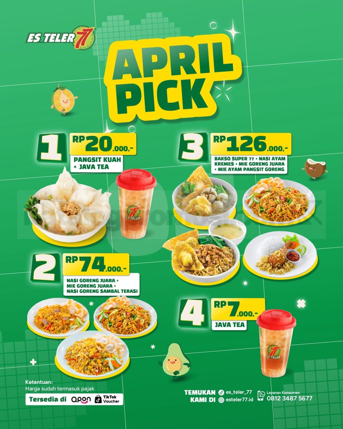Yuk langsung nikmatin berbagai pilihan paket di Promo Es Teler 77 April Pick ini! Mau makan sendiri atau bareng, semuanya tetap hemat dan puas 🍜✨ Jangan sampai ketinggalan kesempatan cobain menu favorit dengan harga spesial ini!