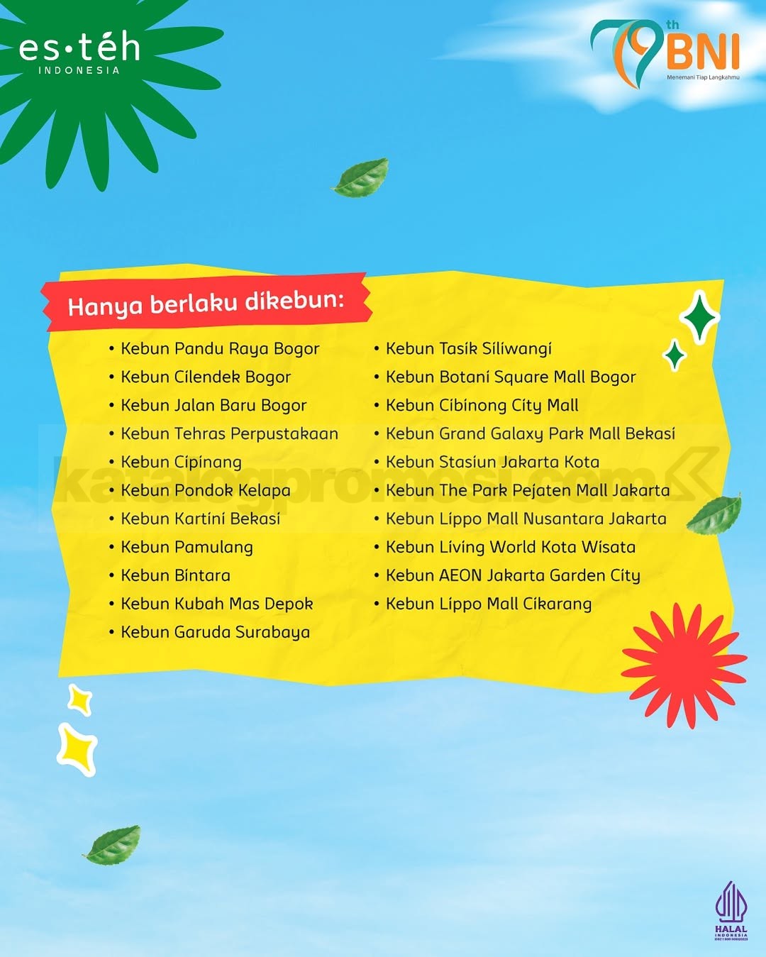 - Berlaku di beberapa outlet Esteh Indonesia yang terdaftar