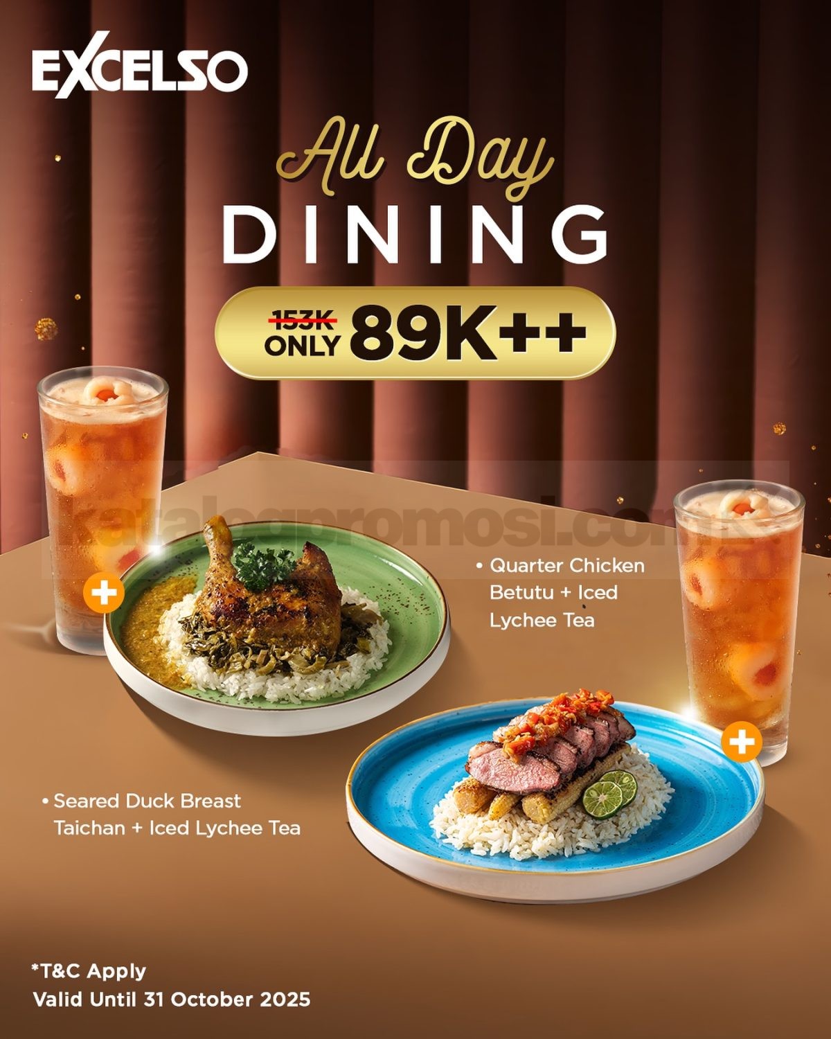 Promo Excelso All Day Dining Menu Best Seller hanya Rp 89K++ ini berlaku sampai 31 Oktober 2025, jadi jangan nunggu akhir bulan dulu. Cobain sekarang juga sebelum kehabisan atau ketinggalan moment-nya!