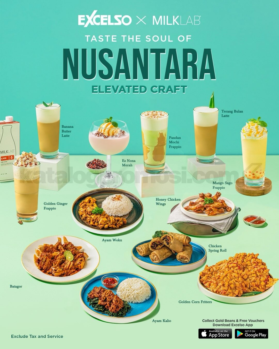 👉 Cek gambar Promo EXCELSO x MILKLAB Taste The Soul of Nusantara di bawah ini untuk lihat detail menu dan konsep campaign-nya.