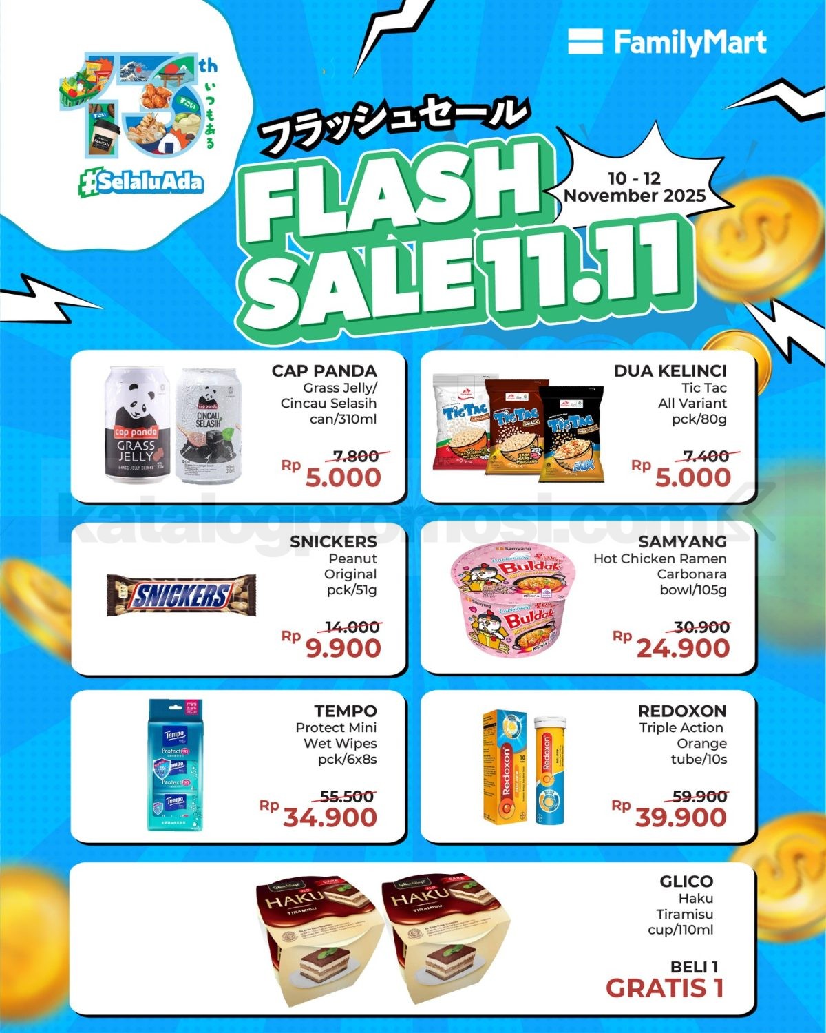 Promo FamilyMart Flash Sale 11.11 mulai Rp.5.000 berlaku 10–12 November 2025 di outlet tertentu.