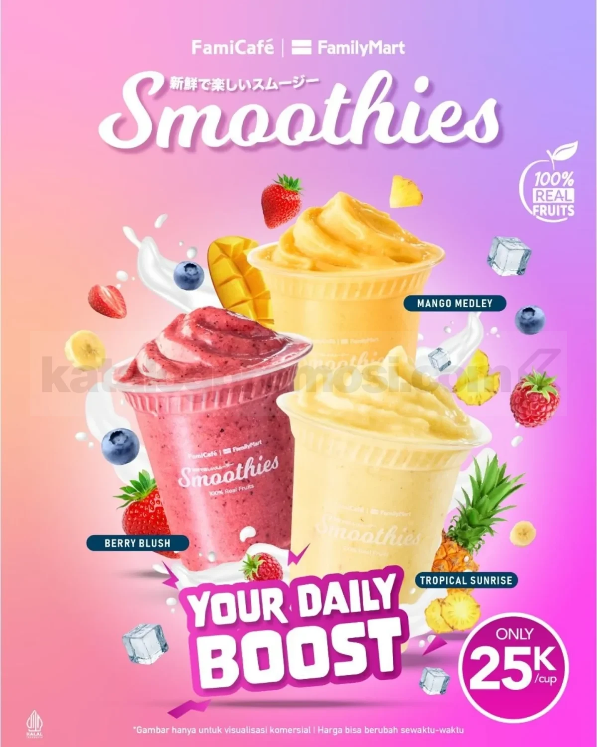 - Pembelian mengikuti ketersediaan mesin smoothies di store yang berpartisipasi
