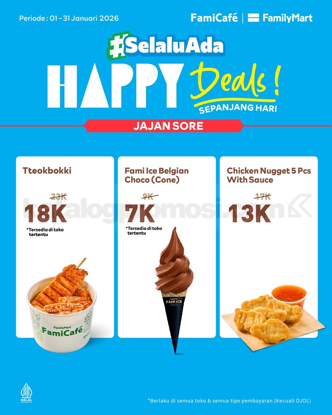 Berlaku di seluruh outlet FamilyMart, dengan catatan beberapa menu tersedia di toko tertentu.