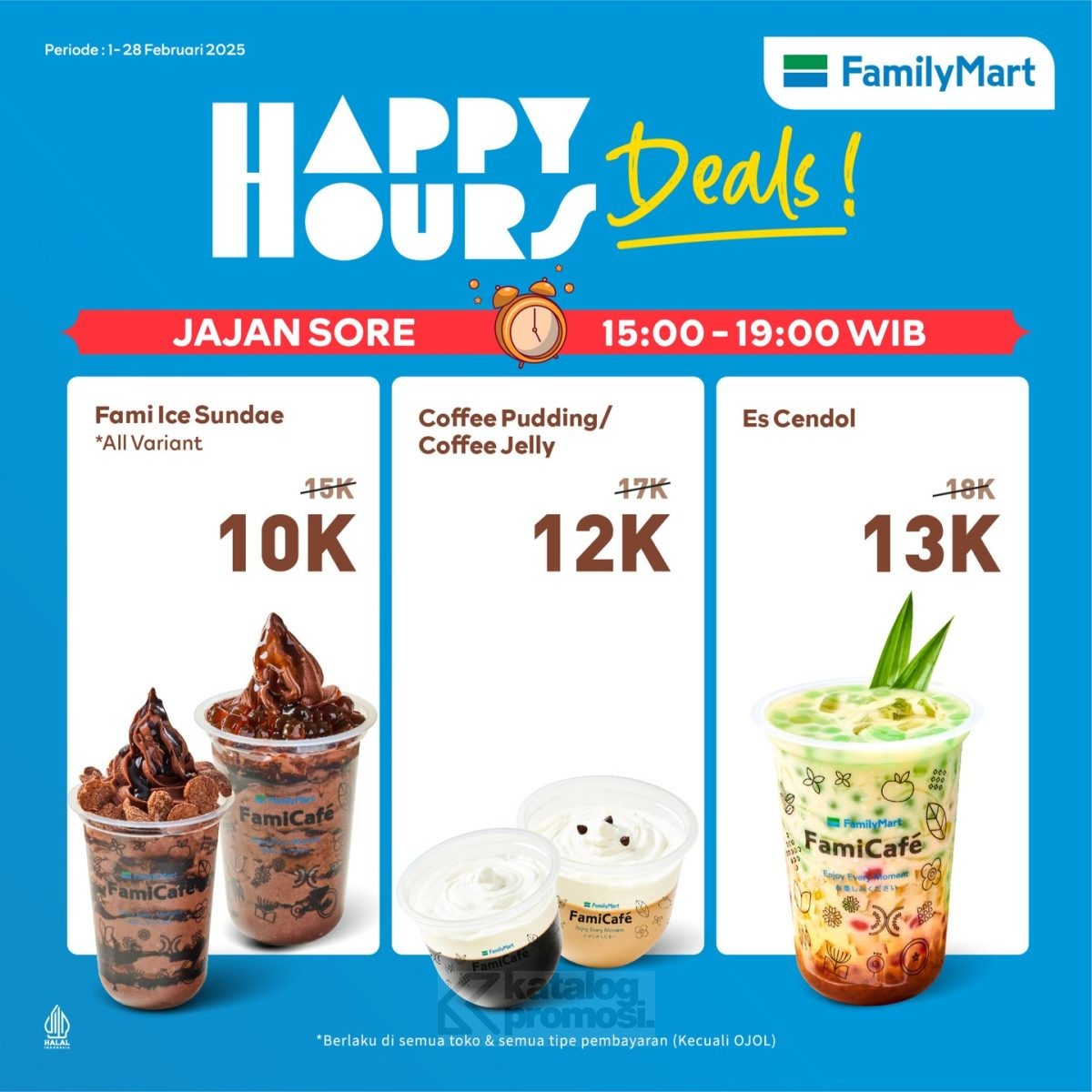 Promo berlaku di semua toko FamilyMart dan semua metode pembayaran kecuali Ojol. Jadi, Sobat Famima bisa langsung jajan sore tanpa ribet. Jangan sampai kelewatan momen jajan hemat ini, karena makin sore makin seru buat ngemil bareng teman atau keluarga! πŸ‘πŸ—β˜•