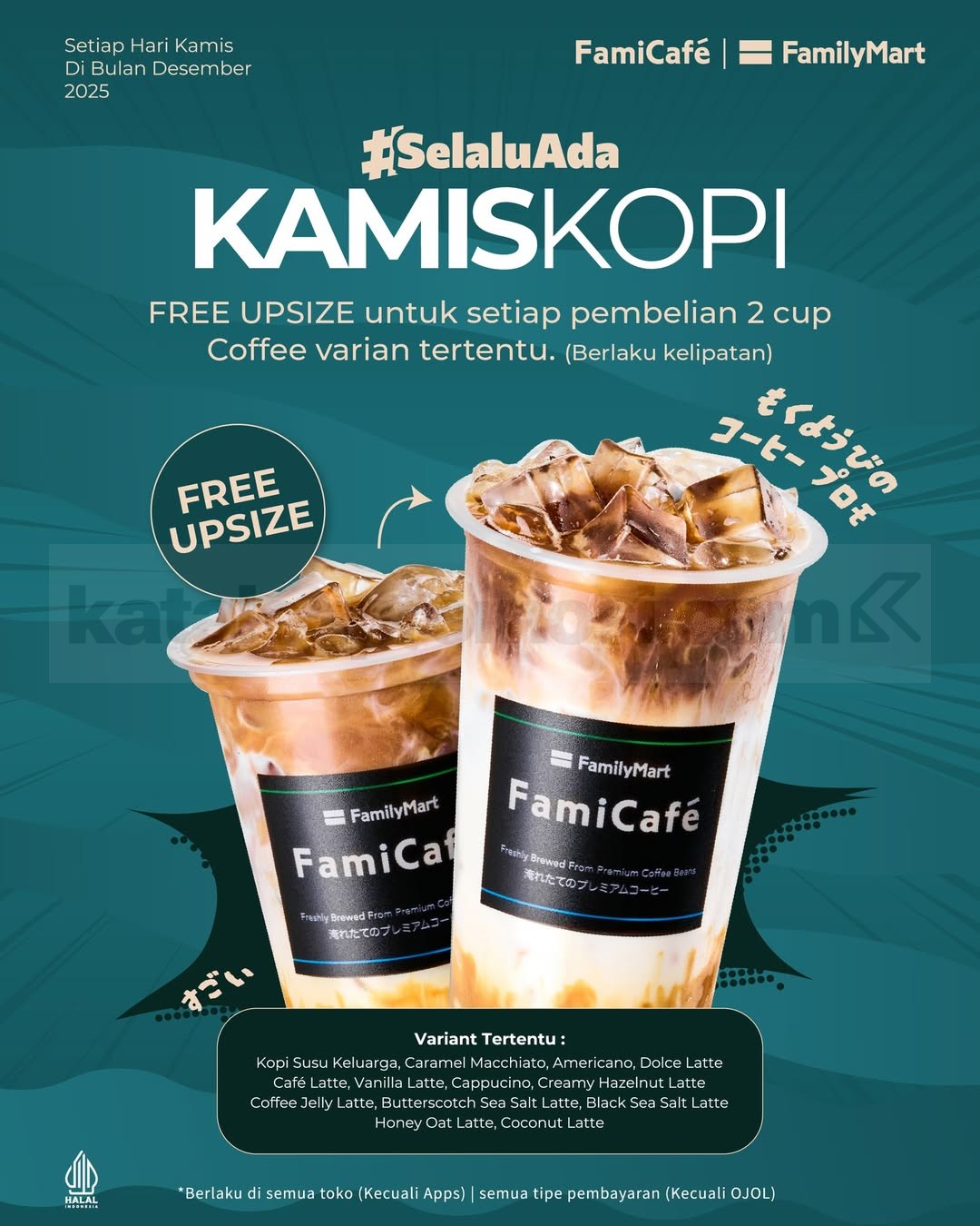 Promo berlaku untuk varian coffee beverage yang ada dalam daftar pilihan yang sudah ditentukan FamilyMart.