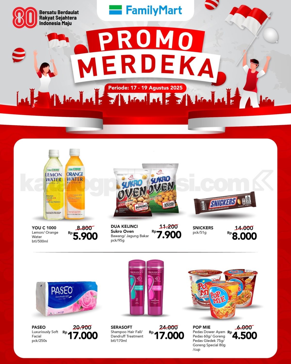 Rayakan Hari Kemerdekaan ke-80 dengan belanja hemat di FamilyMart! Selama periode 17 sampai 19 Agustus 2025, kamu bisa nikmati harga spesial untuk aneka minuman segar, cemilan, hingga kebutuhan harian.