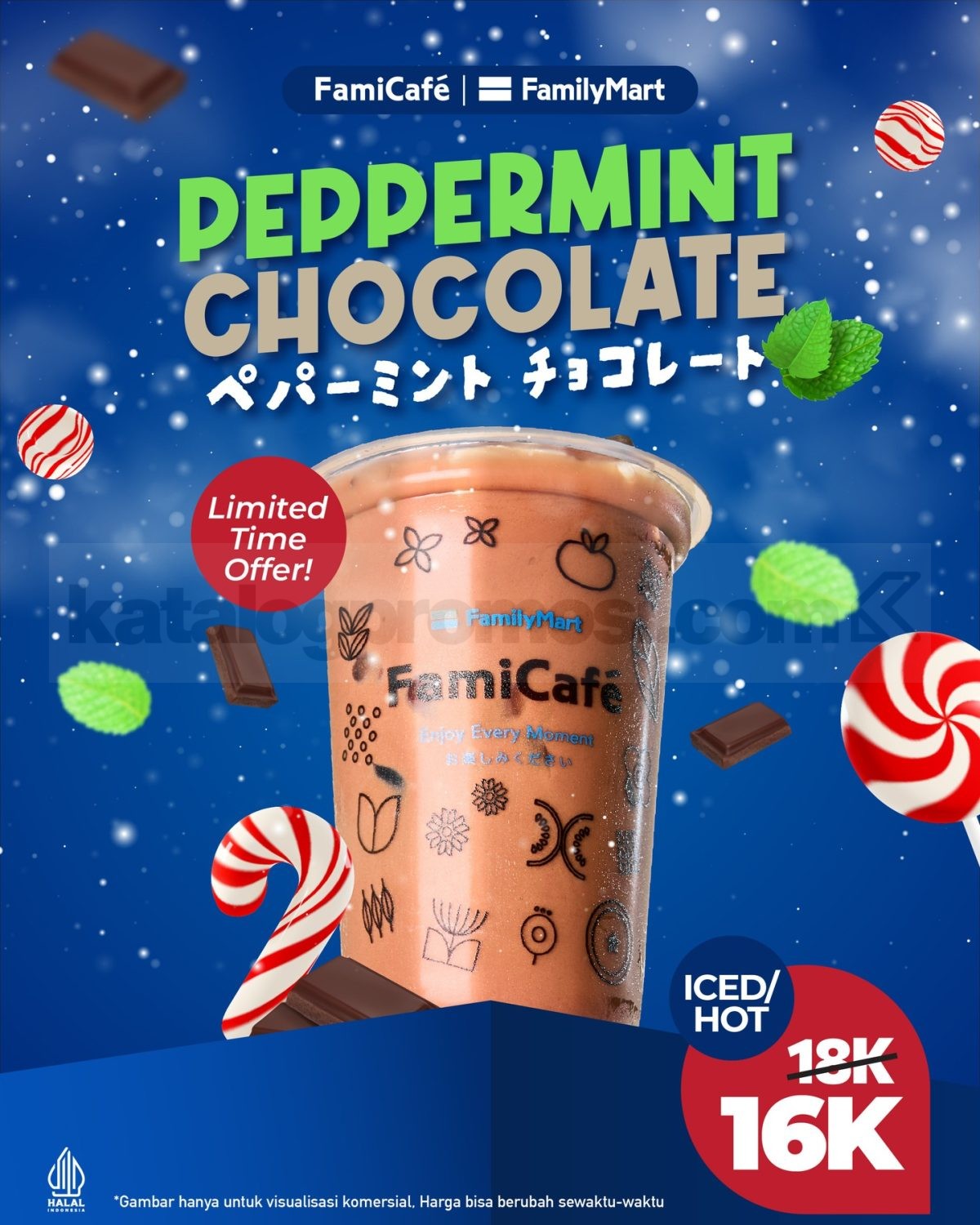 👉 Cek gambar Promo FamilyMart Peppermint Chocolate Rp. 16.000 di bawah ini untuk lihat tampilan minuman cokelat peppermint yang lagi ramai dibicarakan 👀