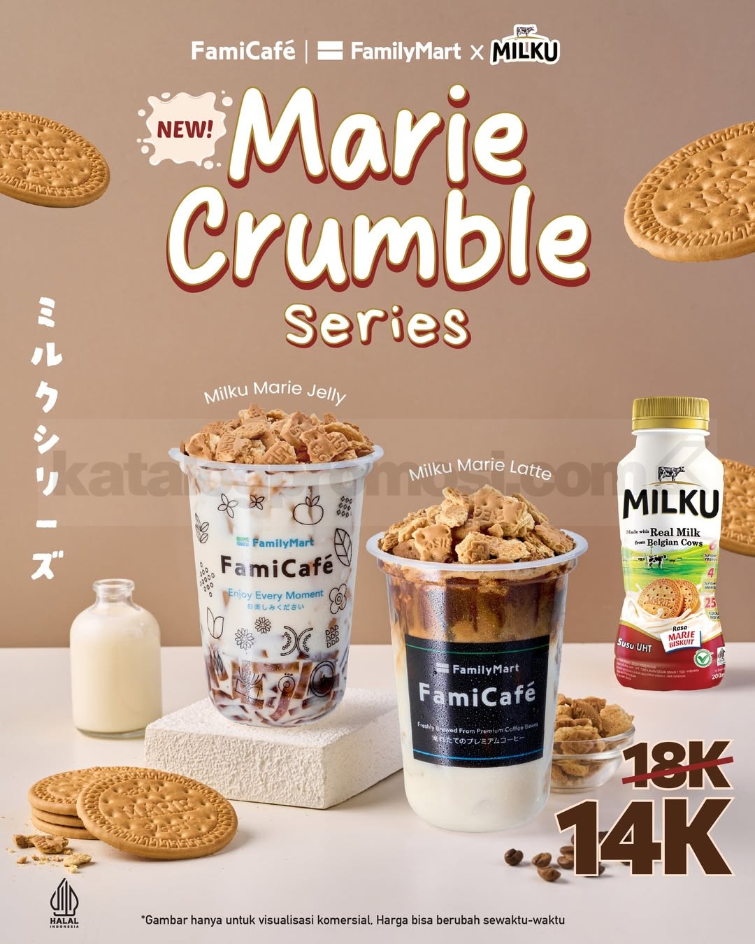 Promo FamilyMart x MILKU New! Marie Crumble Series Rp. 14.000 minuman susu crumble spesial berlaku selama persediaan masih ada di seluruh outlet