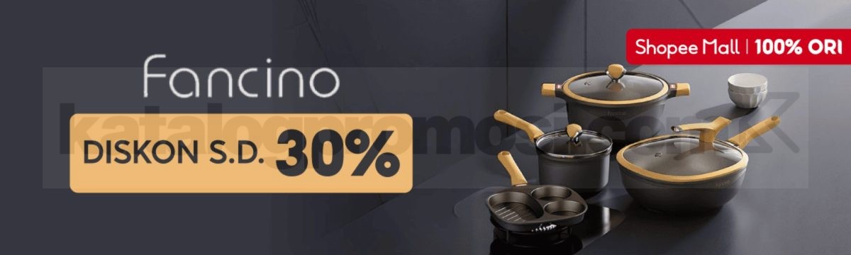 Promo Fancino Cookware Diskon 30% koleksi cookware premium anti lengket dengan desain elegan di Shopee Mall berlaku mulai tanggal 13 Maret 2026 – 31 Maret 2026.