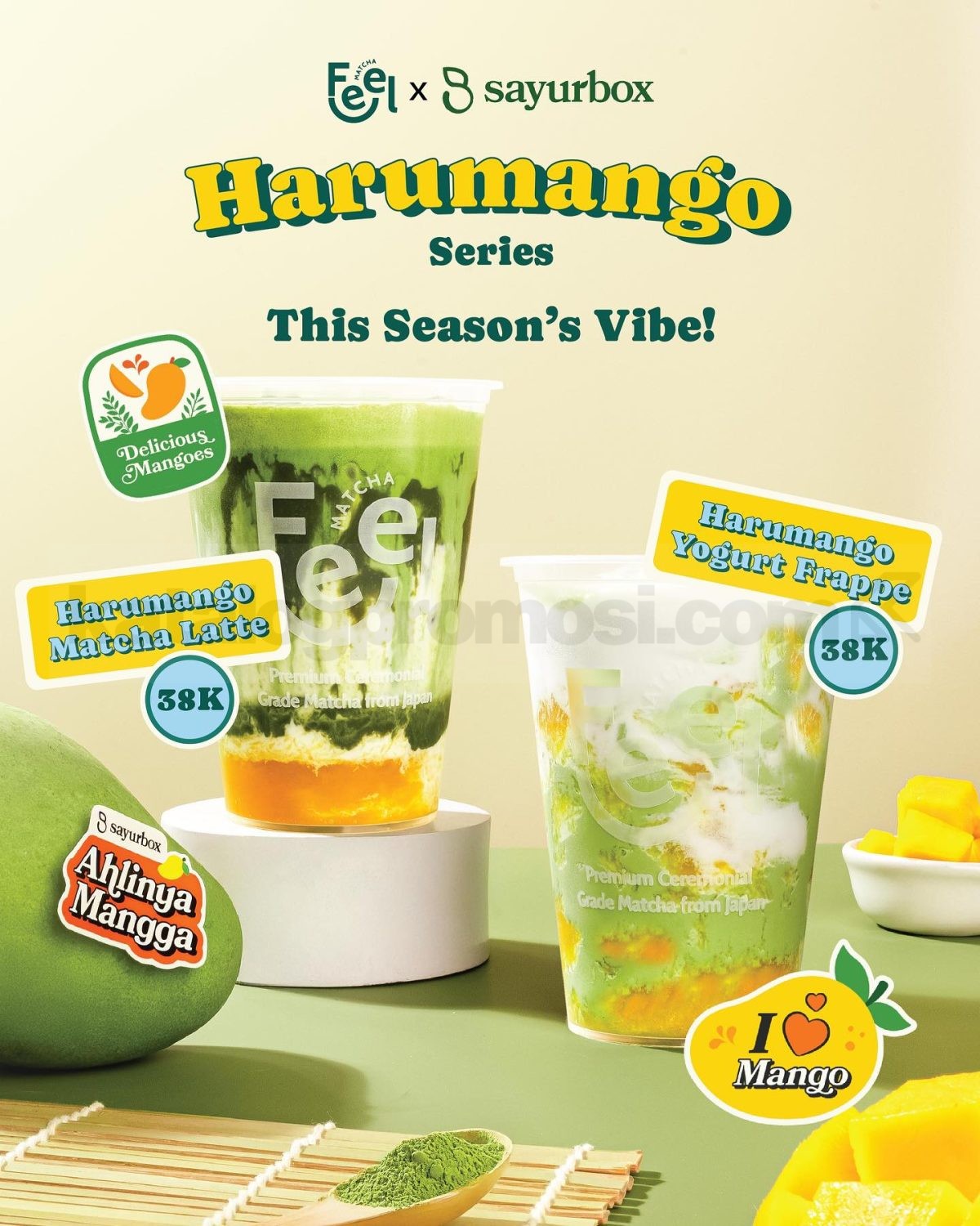Segera manfaatkan Promo Feel Matcha x SayurBox Harumango Series cuma Rp38ribu dan nikmati kombinasi rasa matcha dan mangga yang menyegarkan. Tersedia di seluruh outlet dan layanan online favorit Anda. Jangan sampai kelewatan!