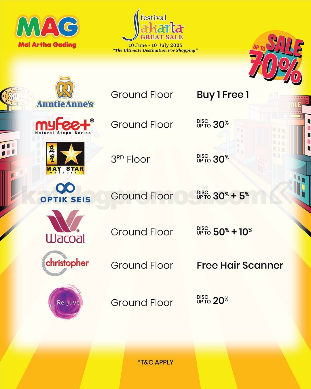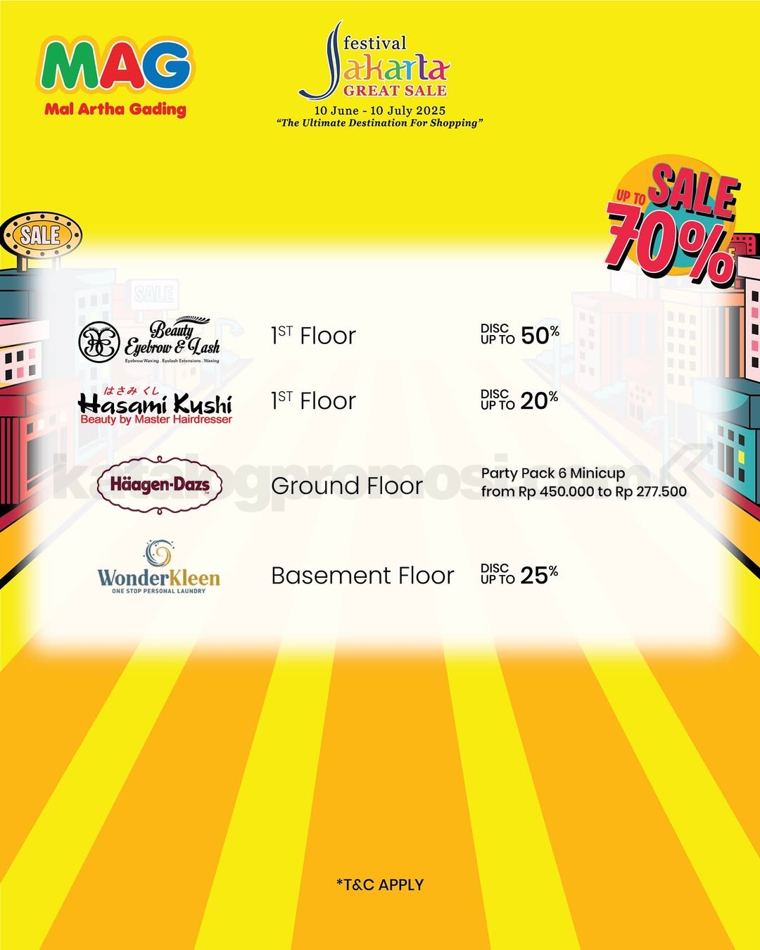 - Diskon hingga 70% tersedia di tenant tertentu yang ikut serta dalam program ini.