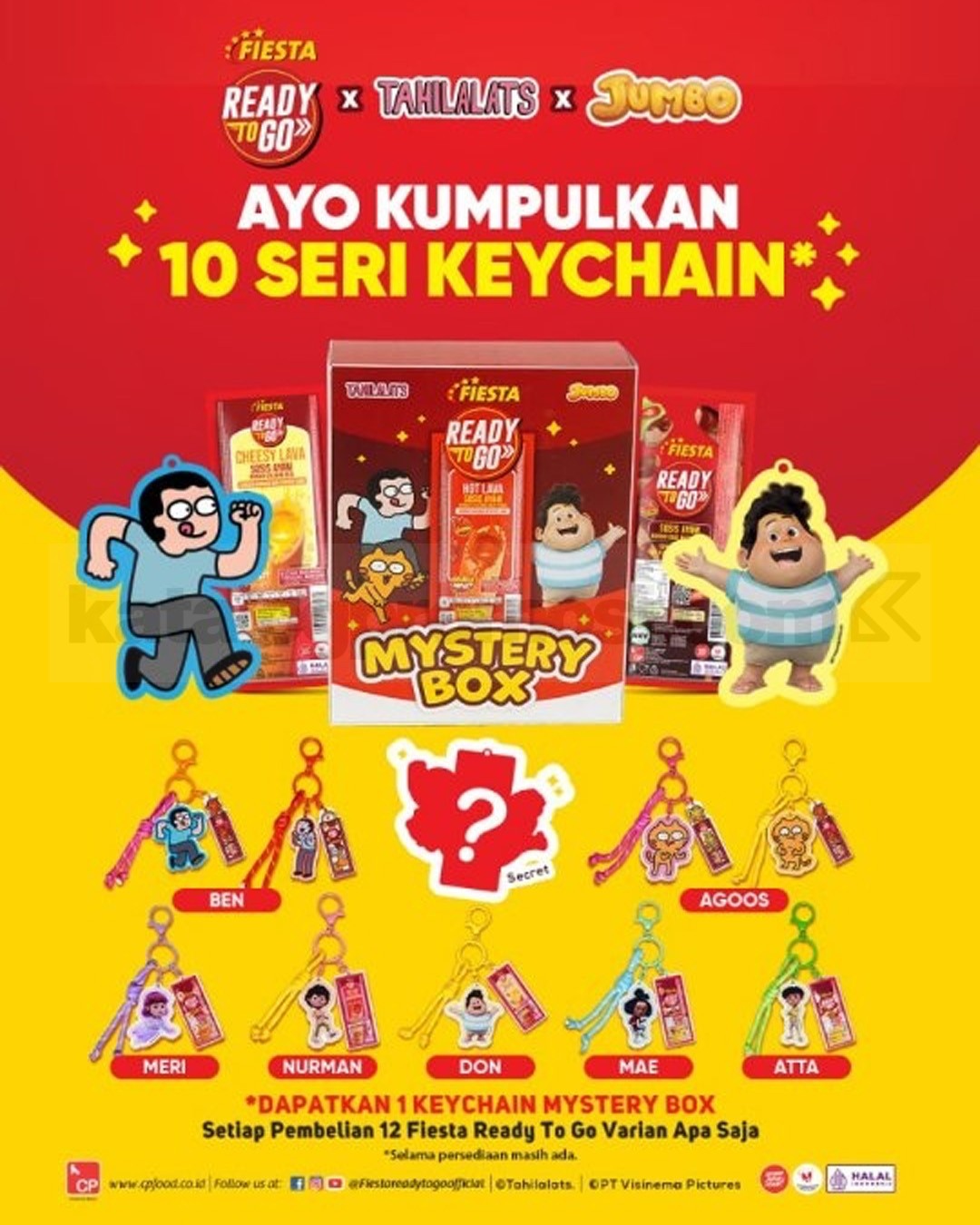 👉 Cek gambar promo Fiesta Ready To Go x Tahilalats x Jumbo di bawah ini untuk lihat desain keychain yang bisa kamu koleksi!