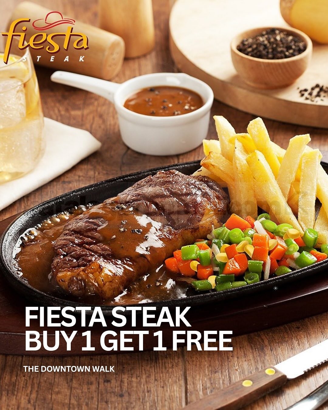 Jangan lewatkan Promo Fiesta Steak Beli 1 Gratis 1 setiap hari dan rasakan steak lezat dengan menu gratisnya sekarang juga!