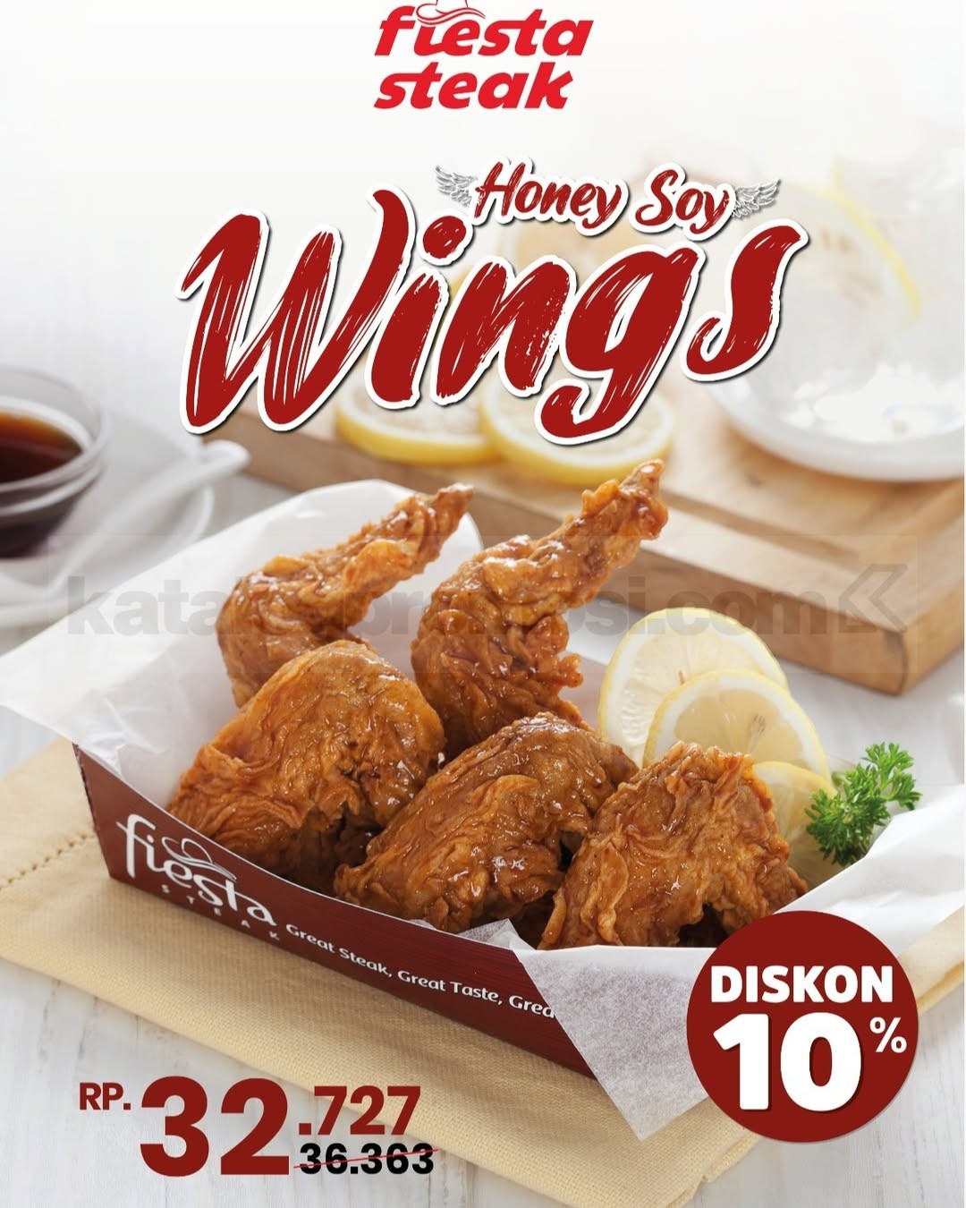 👉 Cek gambar Promo Fiesta Steak Honey Soy Wings Diskon 10% di bawah ini untuk lihat visual promo yang bikin makin kepikiran buat mampir