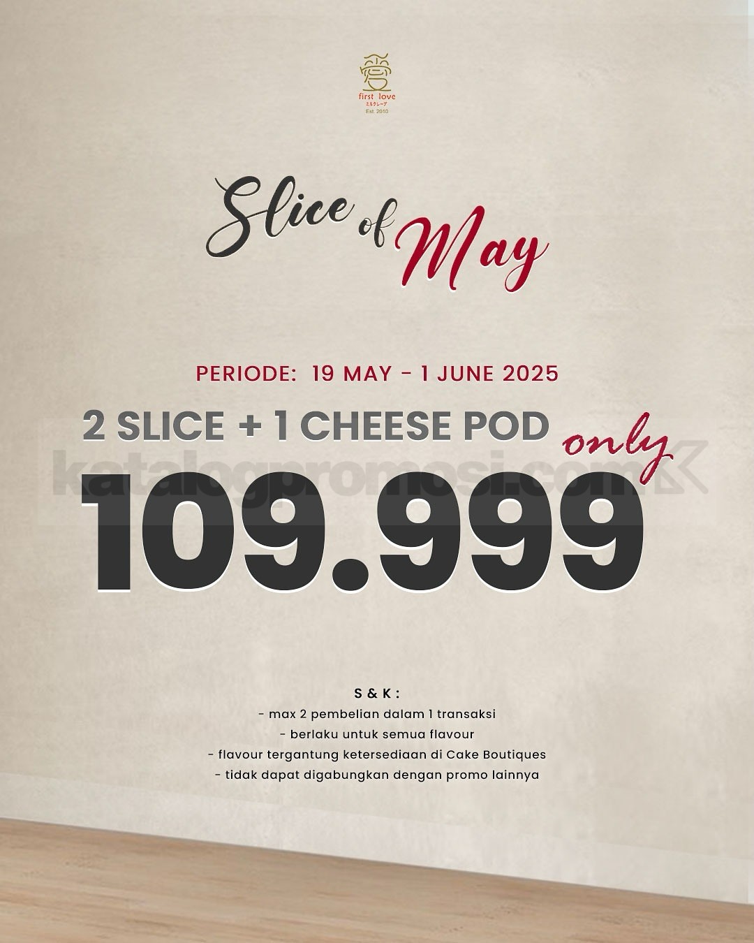 Berlaku di semua outlet First Love Patisserie Cake Boutique.