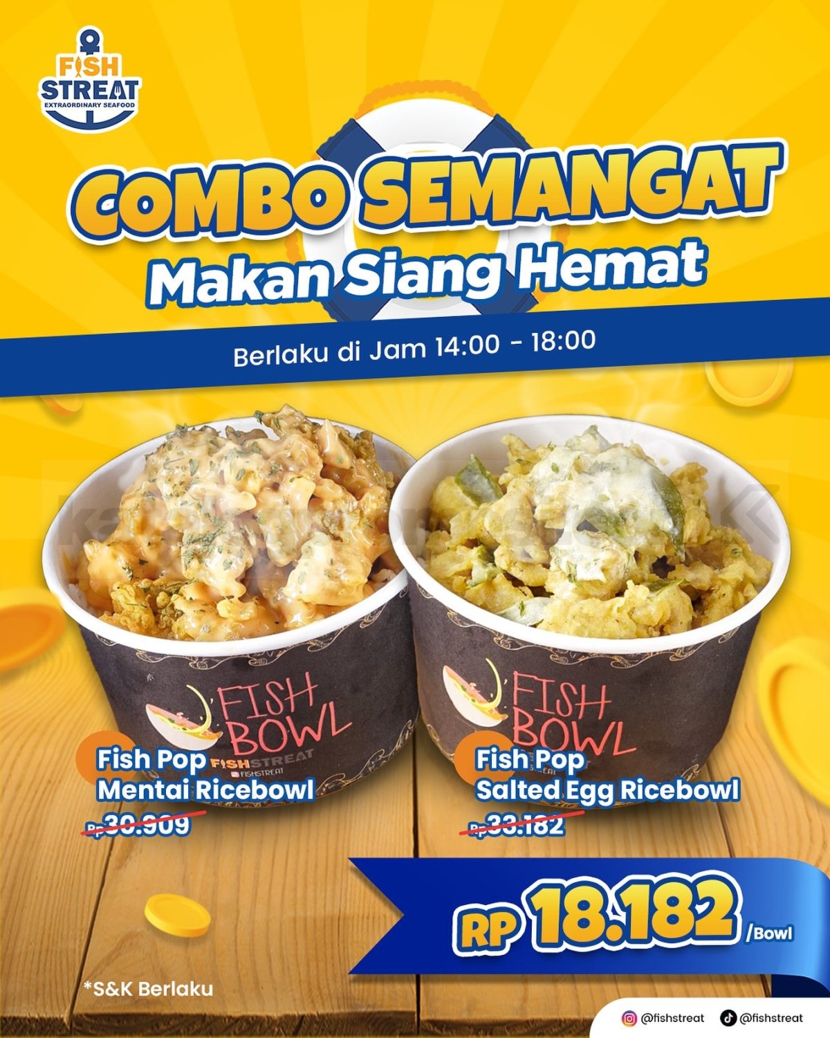 Promo Fish Streat Combo Semangat mulai Rp18.182! Nikmati ricebowl favorit di jam sore dan rasakan kenyangnya dua kali lipat!