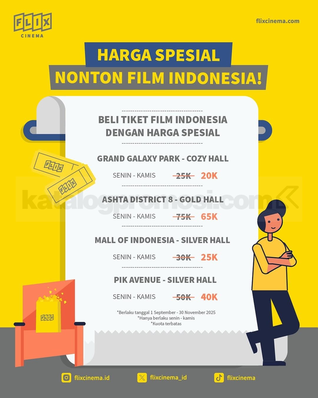 • Harga Spesial Film Indonesia: 1 September – 30 November 2025 (Senin – Kamis)