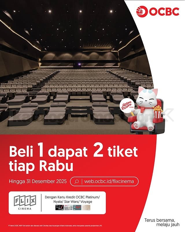 Promo FLIX Cinema Minggu Ini diskon tiket film Indonesia, beli 1 dapat 2, hingga cashback bank berlaku di berbagai lokasi sampai November & Desember 2025.
