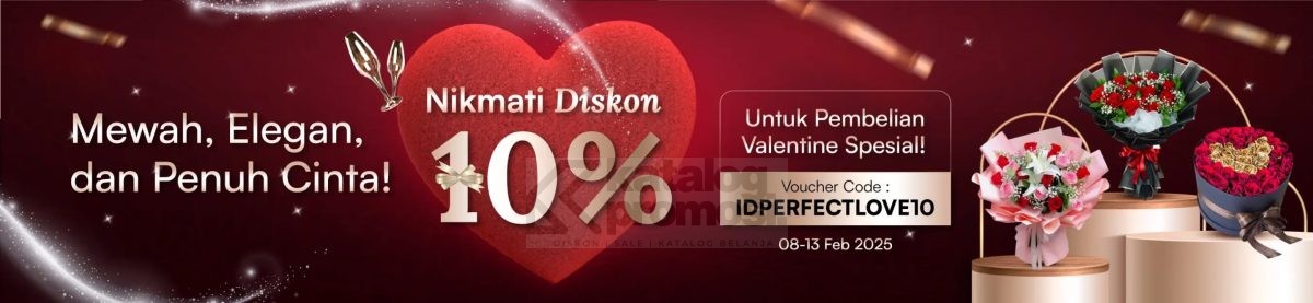 Promo FlowerAdvisor Diskon 10% untuk Buket Bunga Valentine. Berlaku hingga 13 Februari 2025.