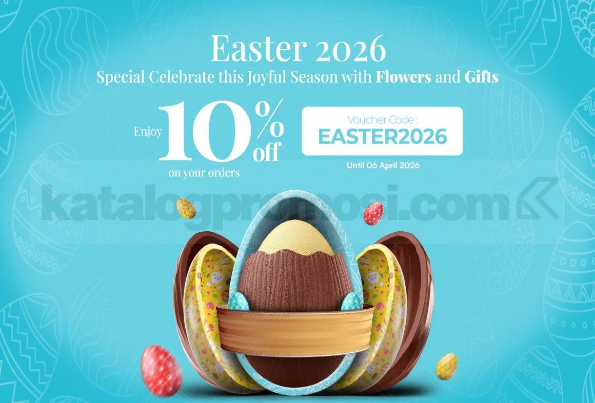 Dalam promo spesial ini, Anda bisa menikmati potongan harga sebesar 10% dengan menggunakan kode EASTER2026. Berbagai pilihan hadiah seperti bunga segar, hampers manis, hingga gift set elegan telah dirancang khusus untuk merayakan momen penuh sukacita dengan sentuhan kasih sayang.