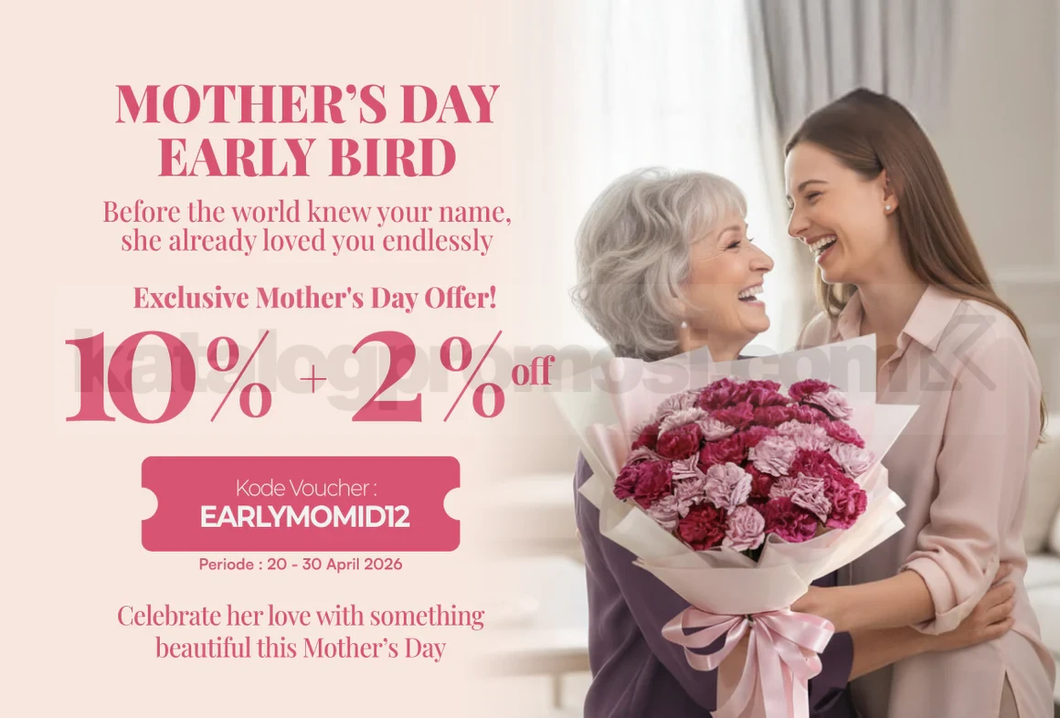 👉 Cek gambar promo FlowerAdvisor Mother’s Day Diskon 10% + 2% di bawah ini untuk lihat detail penawaran spesialnya 🌸