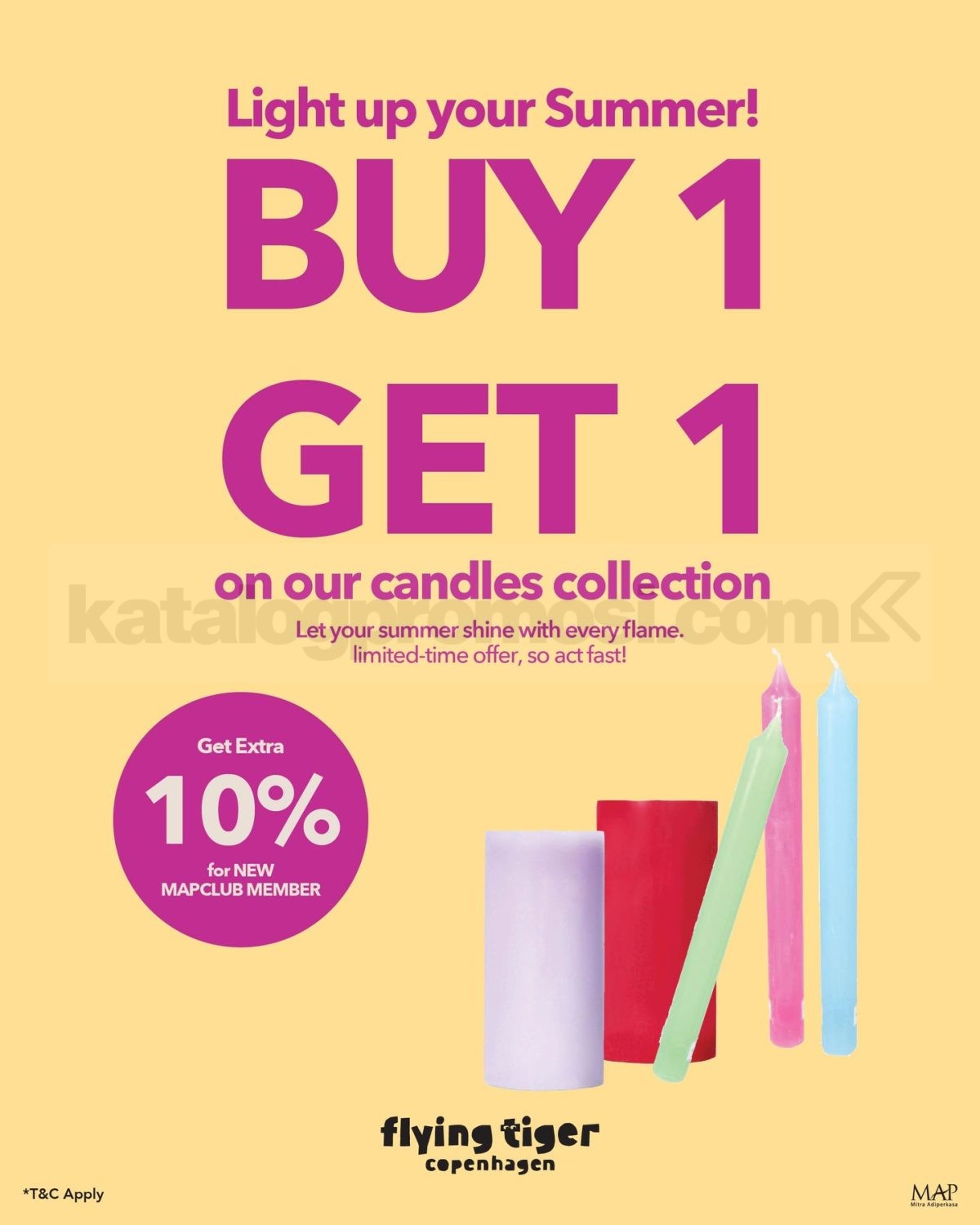 Promo Flying Tiger Copenhagen Buy 1 Get 1 on Candle Collection + ekstra diskon 10% untuk member baru MAPCLUB! Berlaku 6–8 Juni 2025 di semua store.