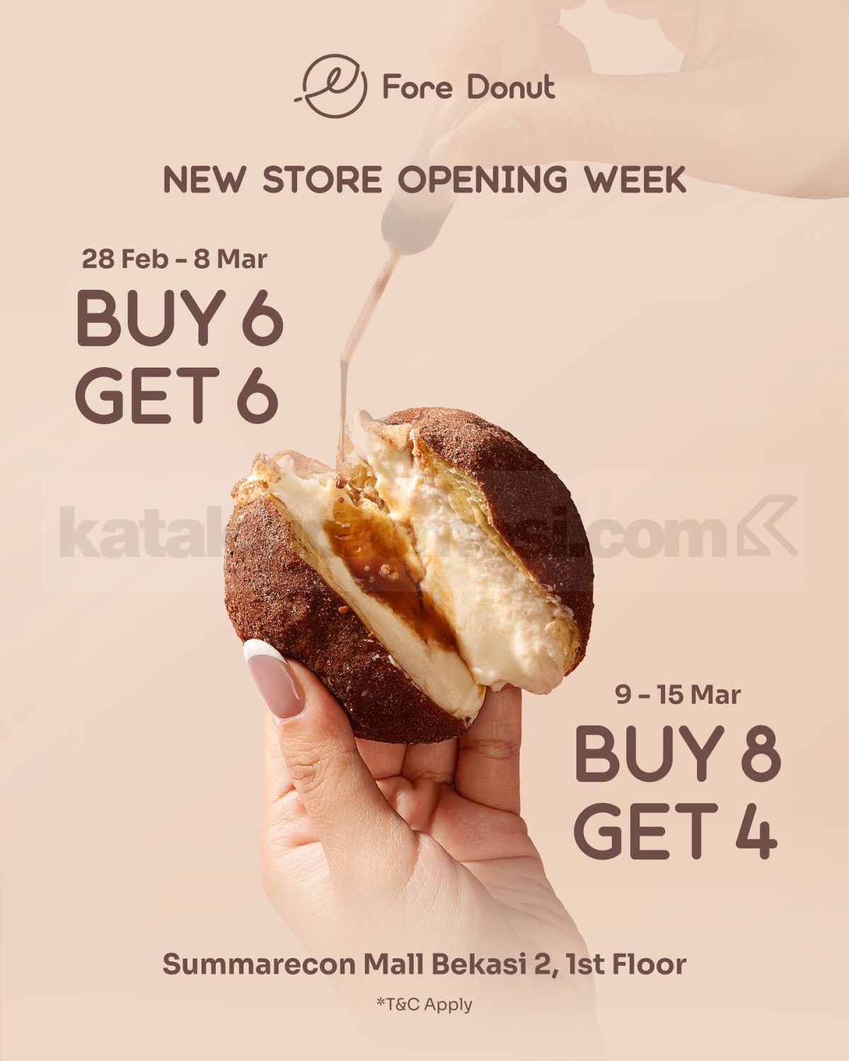 Promo Fore Donut Opening Summarecon Bekasi Beli 6 Gratis 6 periode 28 Februari – 8 Maret 2026 di Summarecon Mall Bekasi 2, 1st Floor.