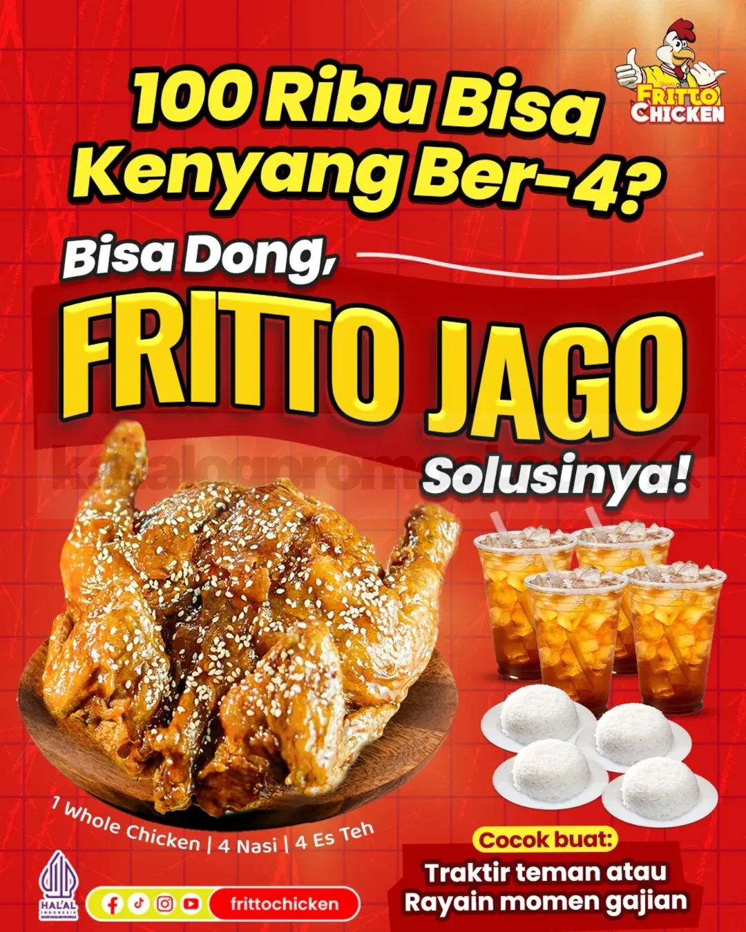 Jangan kelewatan, karena Promo Fritto Chicken Spesial Sumpah Pemuda ini cuma ada selama periode tertentu aja. Yuk rayakan semangat persatuan sambil nikmatin rasa Nusantara yang bikin nagih! ๐ฎ๐ฉโจ