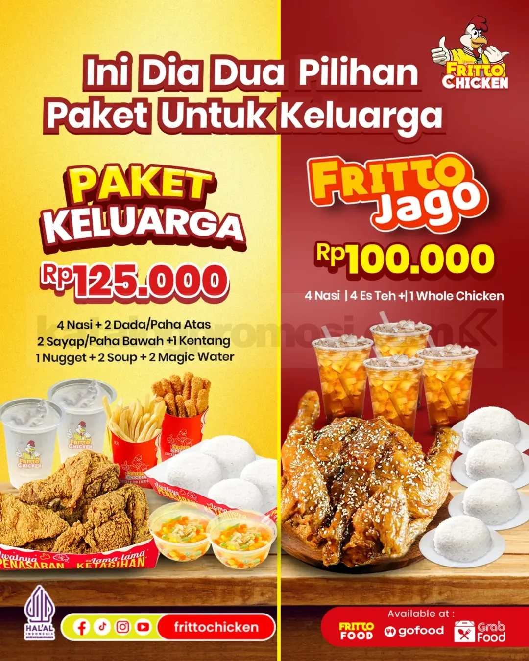 Pilih Paket Hemat sesuai kebutuhan, Paket Keluarga atau Fritto Jago.