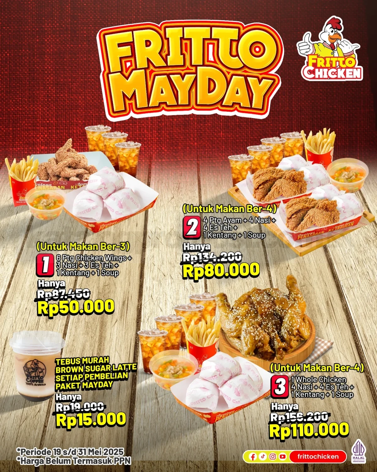 Promo berlaku di outlet Fritto Chicken dan layanan online yang tersedia.