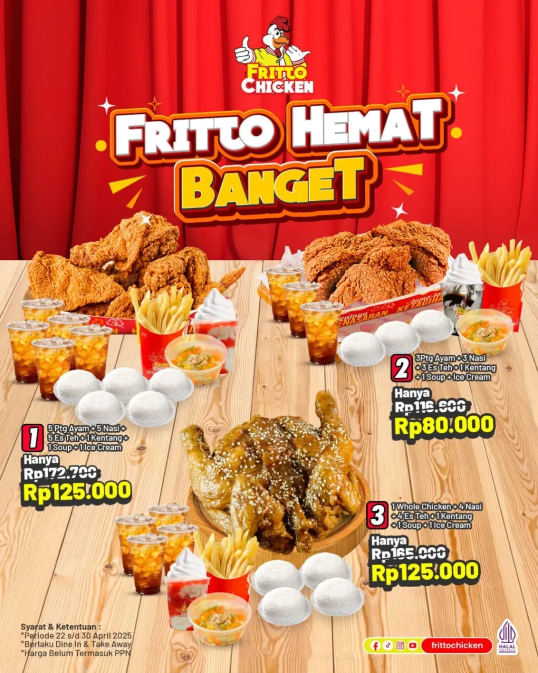 Promo tidak dapat digabungkan dengan promo lainnya dan dapat berubah sewaktu-waktu sesuai kebijakan Fritto Chicken.