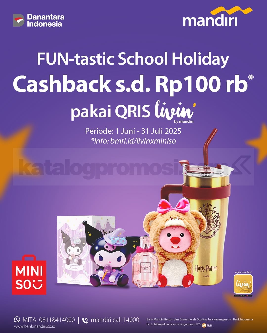 Liburan sekolah gak cuma soal healing, tapi juga saat yang pas buat belanja seru bareng sahabat! 😍 Nah, ada kabar kece nih: Promo FUN-tastic School Holiday dari Miniso x Livin’ by Mandiri bakal bikin shopping kamu makin hemat!