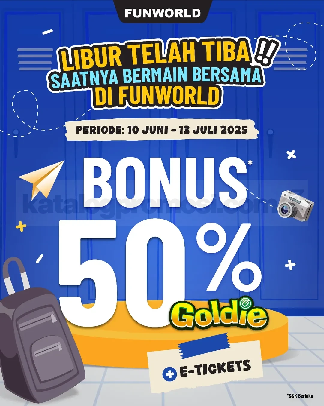 Promo Hello Fun Liburan Akhir Tahun Bonus 25% HOP bikin liburan makin fun dengan bonus HOP langsung ke Hello Card, berlaku mulai tanggal 15 Desember 2025 – 4 Januari 2026 di seluruh outlet Funworld.