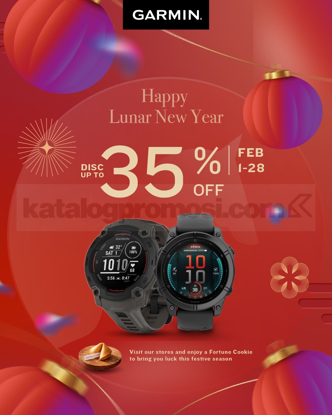 Promo Garmin Happy Lunar New Year Diskon hingga 35% berlaku 1 – 28 Februari 2026 untuk pembelian online dan offline dengan bonus Fortune Cookie selama persediaan masih ada.