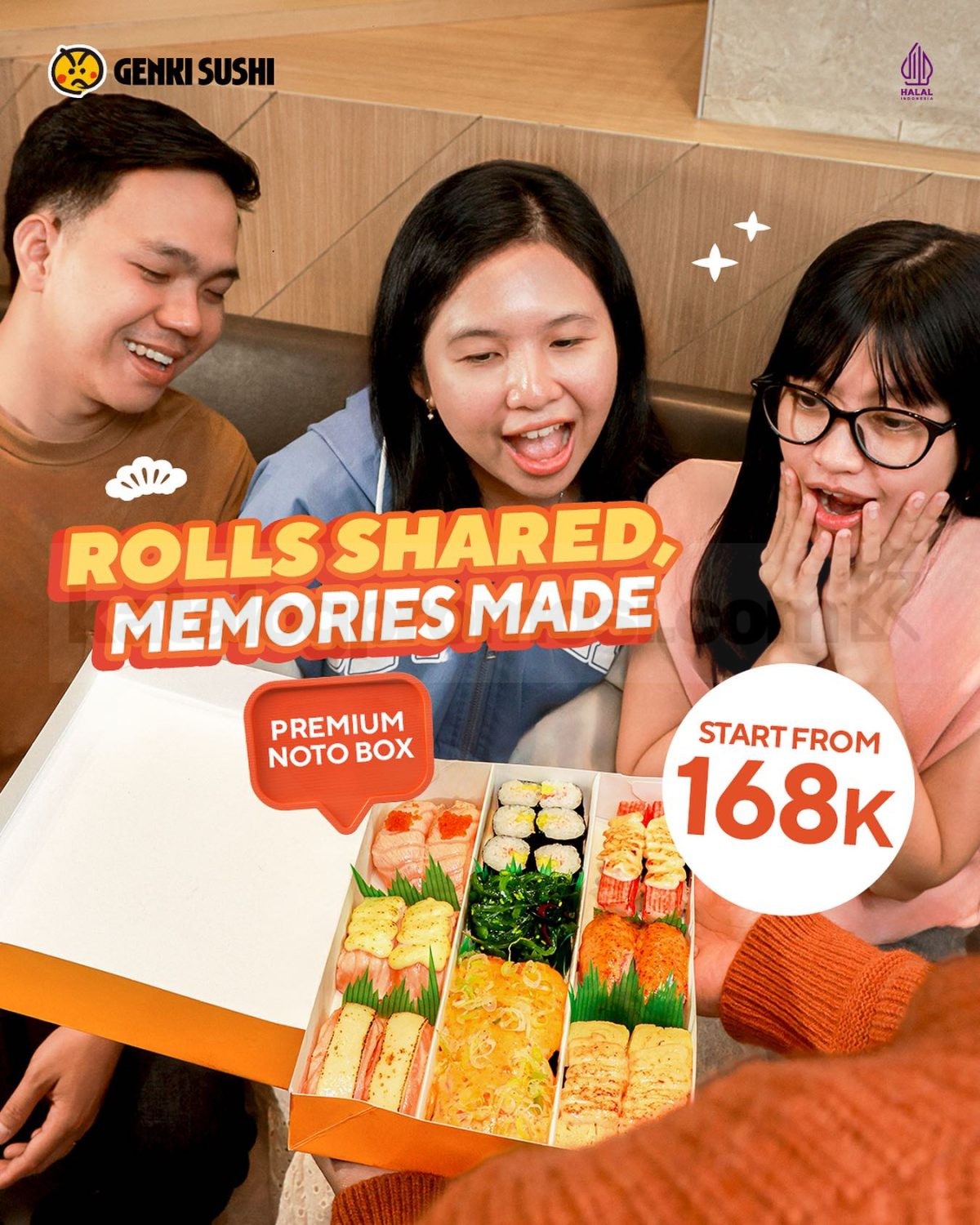 Rasakan kemudahan menikmati sushi favorit dalam satu box praktis dan lezat. Langsung pesan Promo Genki Sushi Share the Rolls, Share the Joy sekarang dan buat quality time-mu lebih seru! ๐ฃ๐