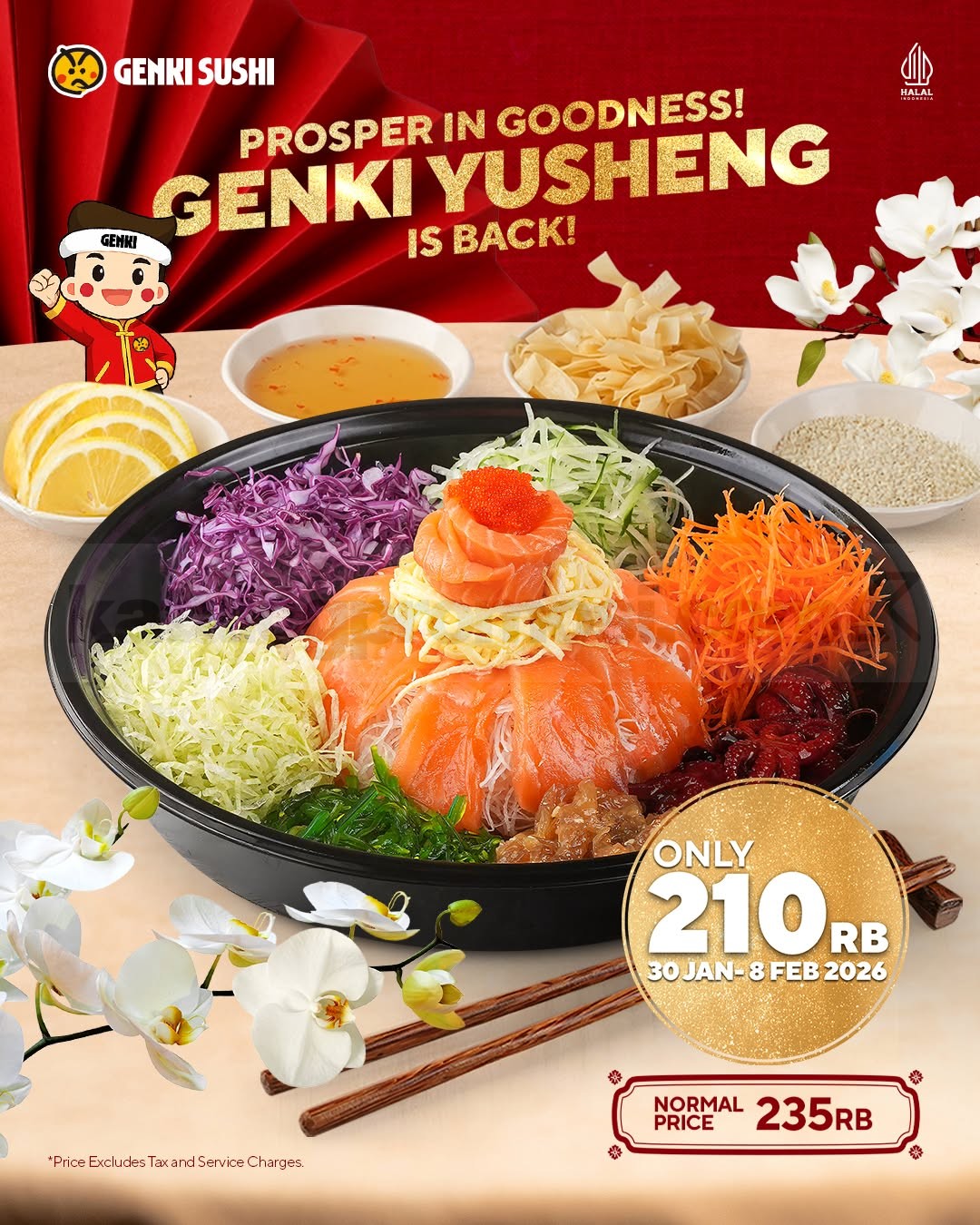 Pemesanan Promo Genki Sushi Yusheng Imlek berlaku hingga 8 Februari 2026.