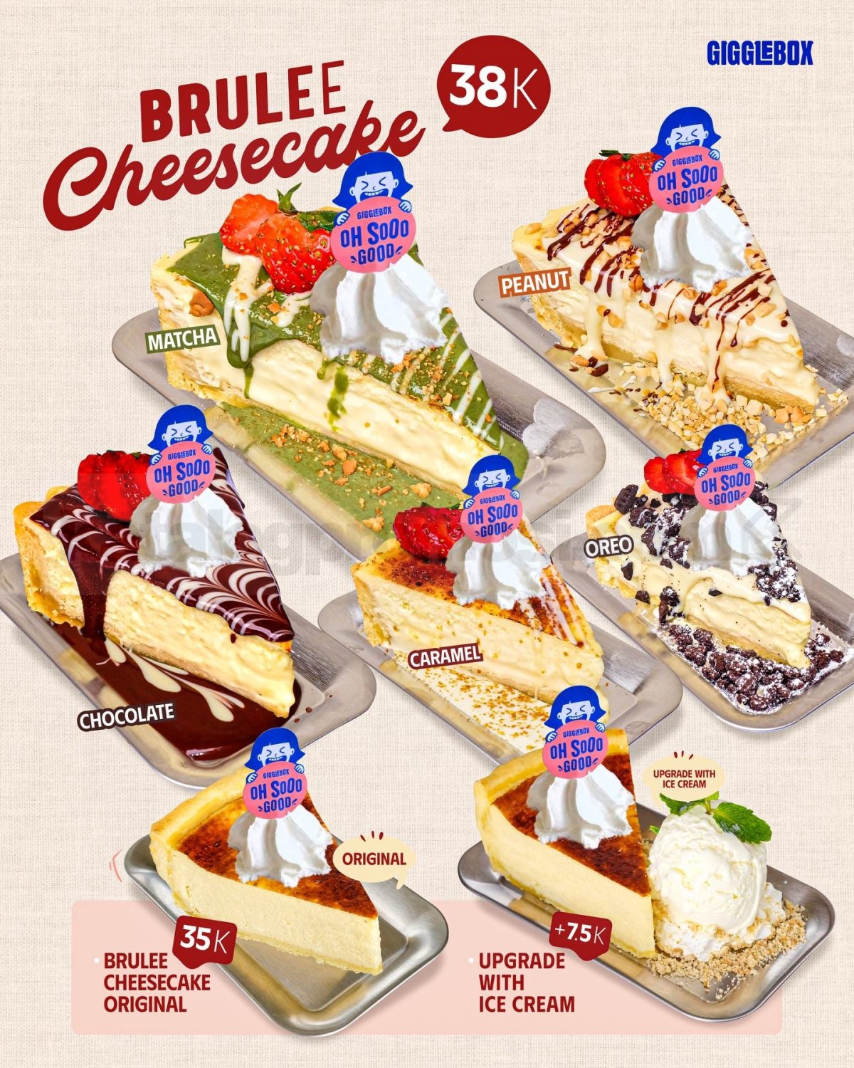 👉 Cek gambar Promo Gigglebox Cheesecake Lumer Brulee dan Burnt di bawah ini untuk lihat detail menu dan pilihan rasanya yang bikin ngiler