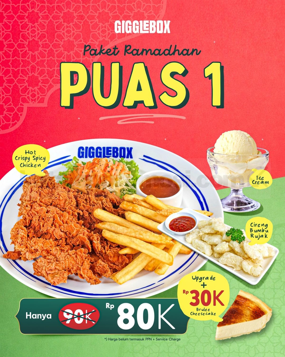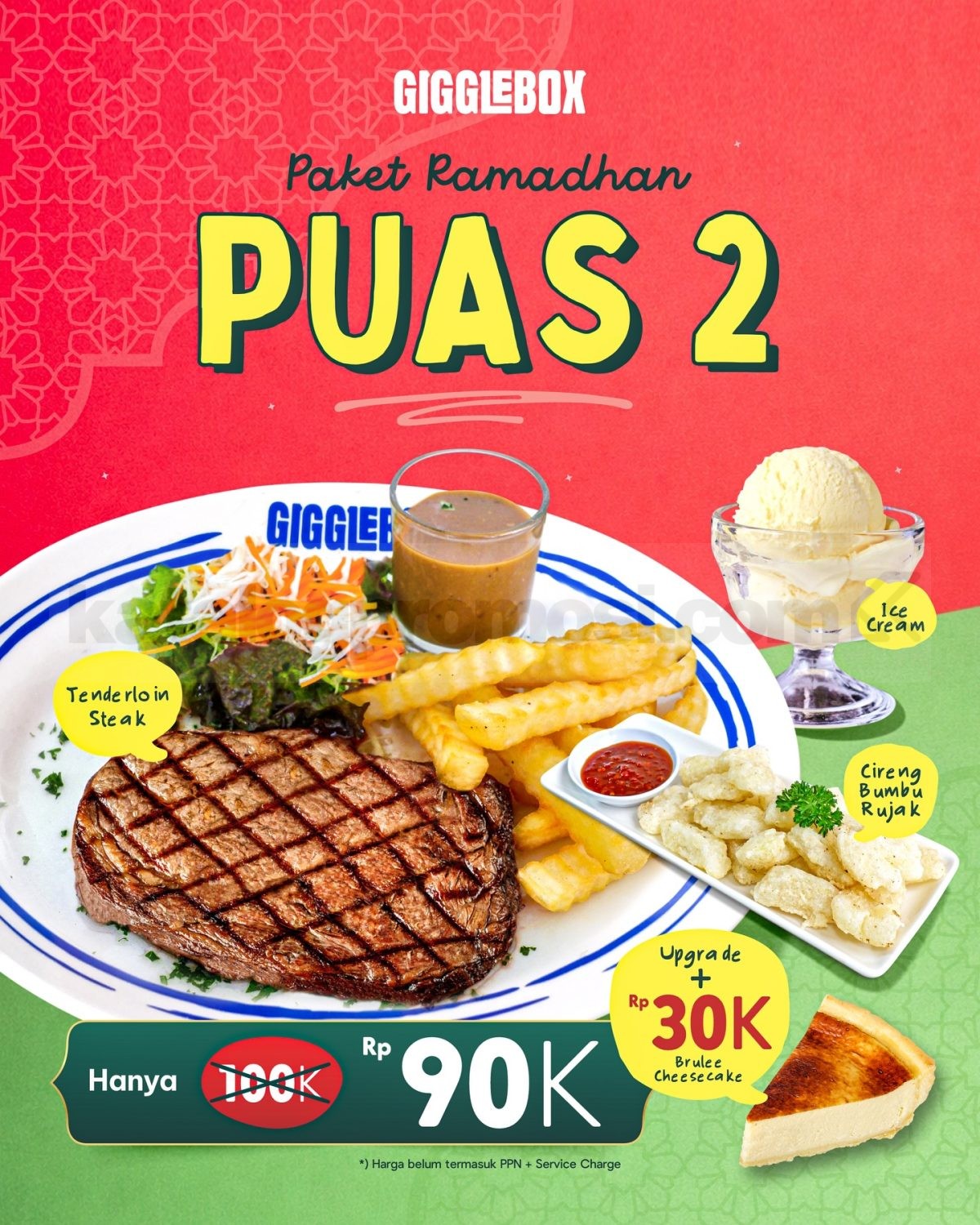 Promo GiggleBox Paket Puas mulai Rp. 80 ribu dengan menu lengkap buka puasa + upgrade dessert, berlaku selama priode ramadan berlangsung di lokasi tertentu.