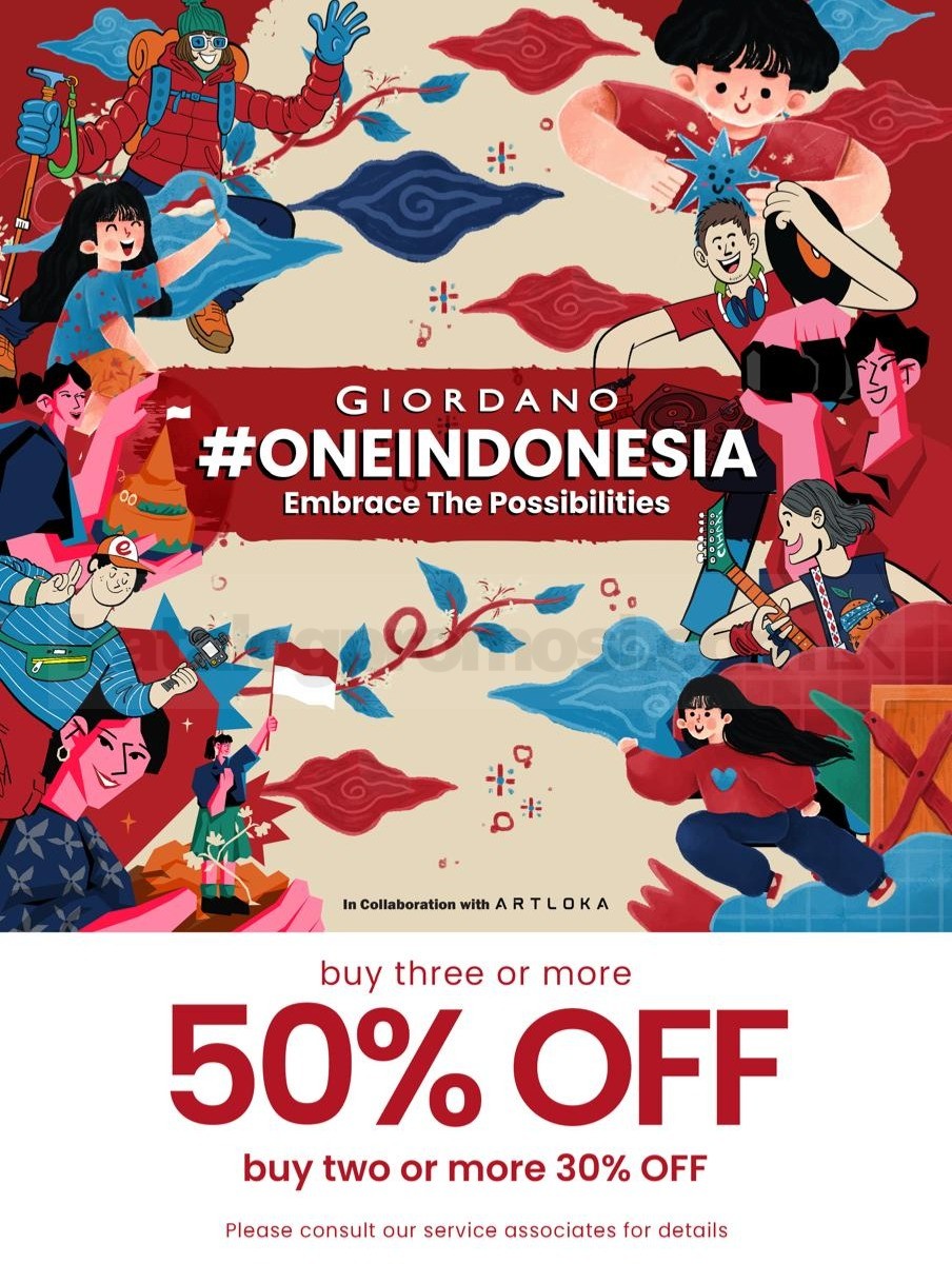 Promo Giordano Independence Day Collection diskon hingga 50% untuk pembelian 3 item berlaku terbatas. Rayakan Hari Merdeka dengan gaya terbaikmu!